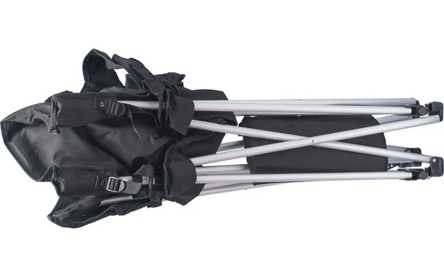 Das Highlight unserer Travelchair-Reihe: Dieser Sessel (so kann man ihn schon nennen) verfügt über Armlehnen mit eingebauten Getränkehaltern, eine bequeme, verstellbare Rückenlehne mit separatem Nackenkissen und eine angebaute Fußstütze (abnehmbar). Seitlich ist ein Steckfach für Lektüre und Kleinkram angebracht. So bequem sitzt man sonst nur in der heimischen Sitzgruppe. Stabiles und sauber verarbeitetes Alugestell mit 600D Polyester Bezug. Natürlich mit Tragetasche.