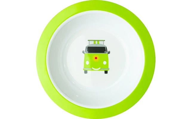 Suppenteller-Set für 4 Personen im tollen Camper Smiles Design. Das Set ist bruchunempfindlich, pflegeleicht, spülmaschinengeeignet, temperaturbeständig bis +70°C und leicht im Gewicht.