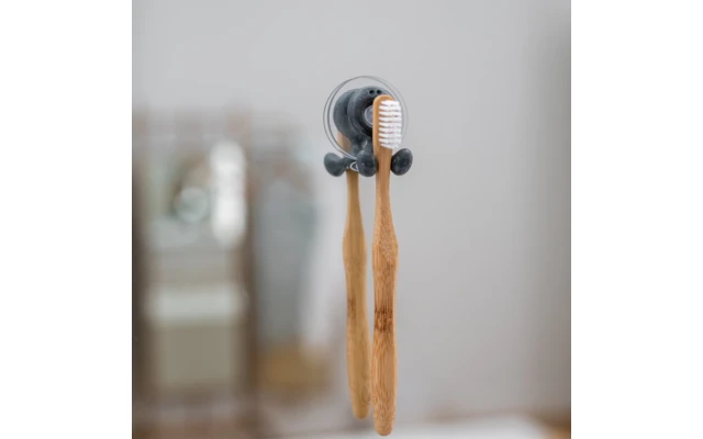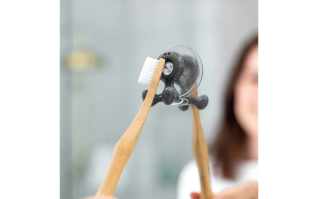 Hier können Zahnbürsten locker abhängen. TOMMY streckt beide Beine von sich und bietet luftig-frischen Halt für Zahnbürsten. Besonders für kleine Badezimmer eine platzsparende und schnelle Lösung. Der Zahnbürstenhalter wird ohne Montageaufwand und Anbohren von Fliesen ganz einfach mit einem Saugnapf an der Wand befestigt.