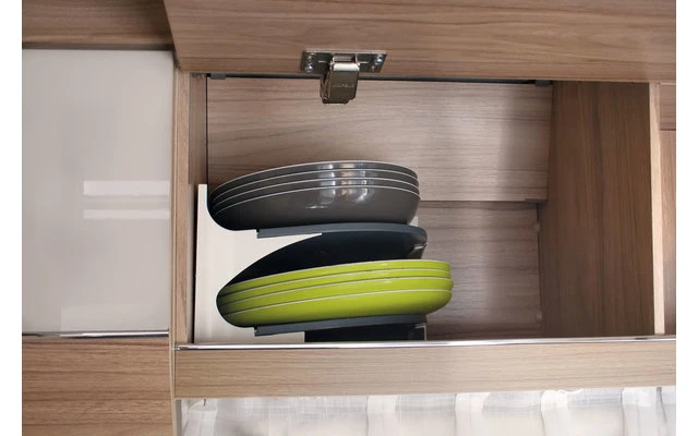 • auch für niedere Schränke und unterschiedliche Tellergrößen nutzbar